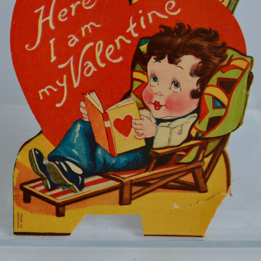 Vintage Here I Am My Valentine Card Made in Germany *Torn