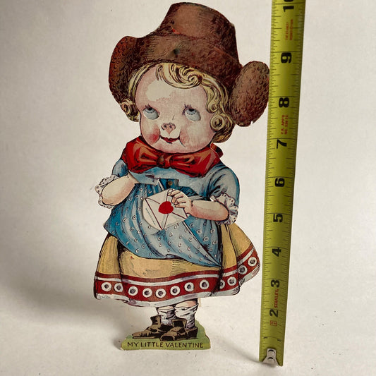 Vintage "My Little Valentine" Mechanical Card CREEPY GIRL DOLL