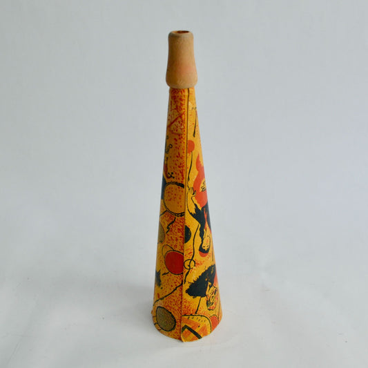 Vintage Noise Maker Cardboard with Wood Mouthpiece Clown Indian Joker Jester 9"