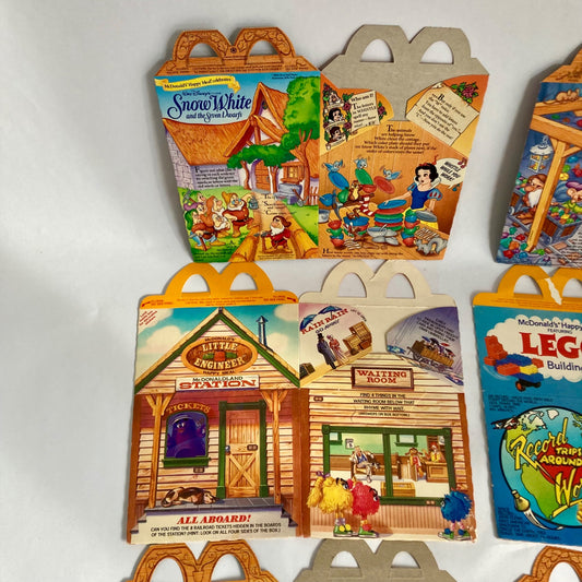 Vintage Lot 6 McDonald's Happy Meal Boxes UNUSED Snow White Lego Little Engineer