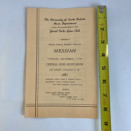 Vintage 1948 University of North Dakota Handel's Messiah Music Orchestra Program