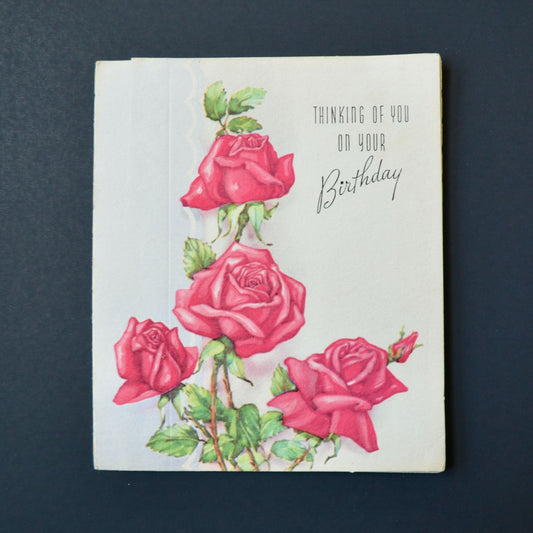 Vintage 3D Birthday Card Unused Roses Window 1960 USA