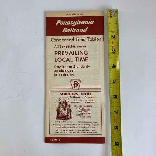 Vintage 1959 Pennsylvania Railroad Condensed Time Tables 4/26/1959 Railway Train