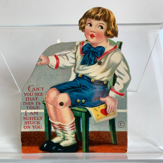 Vintage Valentine's Day Card Articulating Boy on Chair