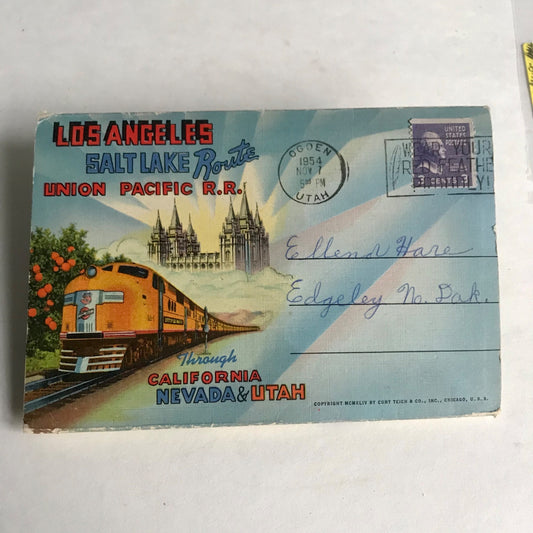 Vintage Union Pacific Railroad Los Angeles Salt Lake Route Postcard Fold-Out