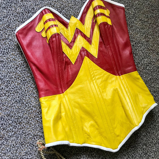 Hour Glass Corsetry Genuine Leather Wonder Woman Corset Size L RARE!