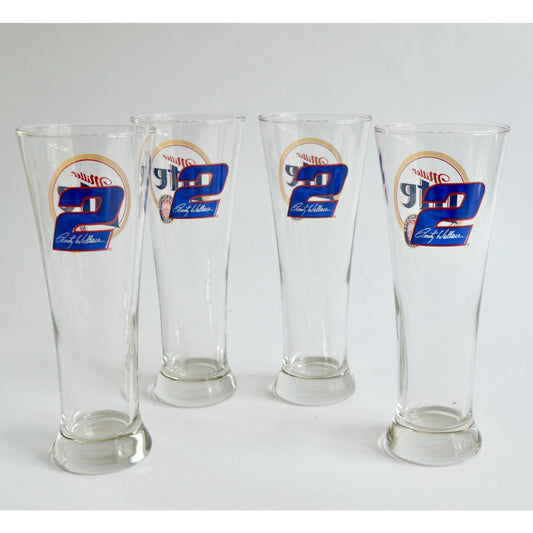 Set of 4 Miller Lite Rusty Wallace #2 Beer Pilsner Glasses Tall 8.5" NASCAR Racing