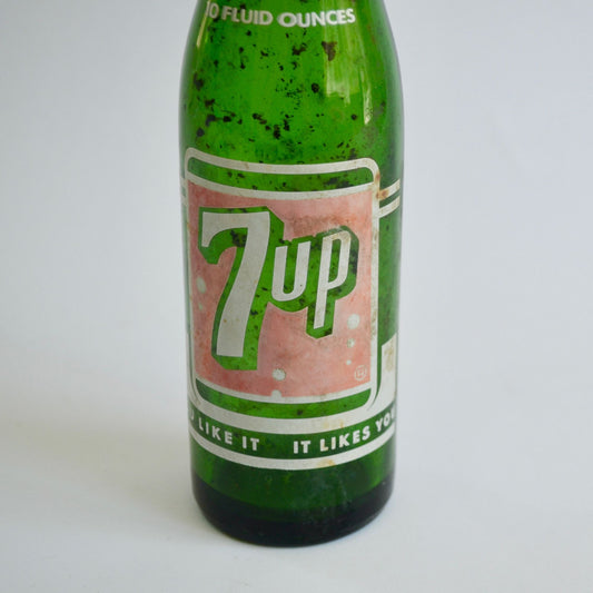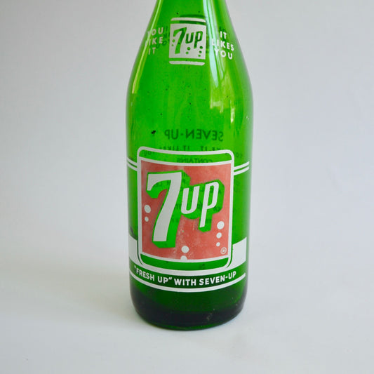 Vintage 7up Glass Bottle 10 Fluid Ounces Green 7 Up Soda Pop "Fresh Up"