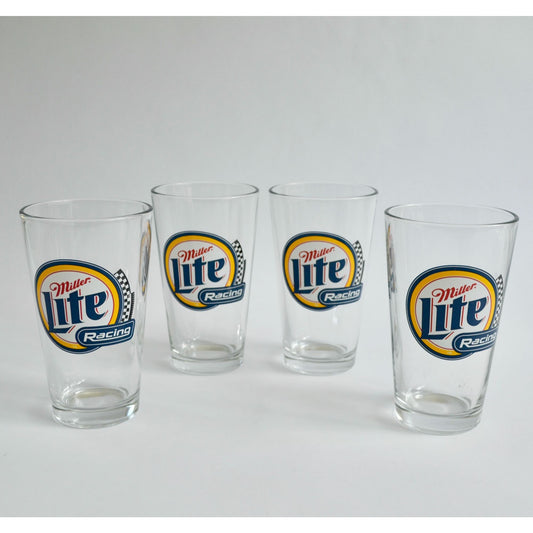 Set of 4 Vintage Miller Lite Racing Beer Glasses Pint 6" NASCAR Indy Car