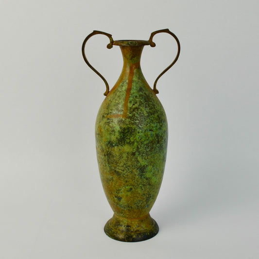 Vintage Style Metal Vase Urn Two Handles Decorative 11"