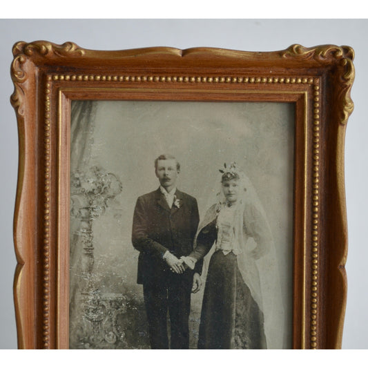 Vintage Bride & Groom Wedding Photo in 1970s Ornate Frame