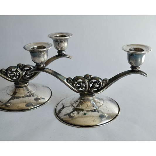 Oneida Vintage Silverplated Double Arm Taper Candlestick Holders Pair
