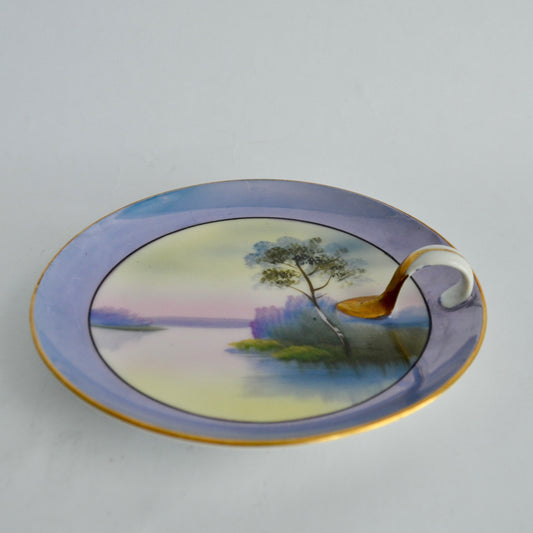 Noritake Japan Handpainted Lustreware Blue Gold Trim Handled Trinket Tray Plate