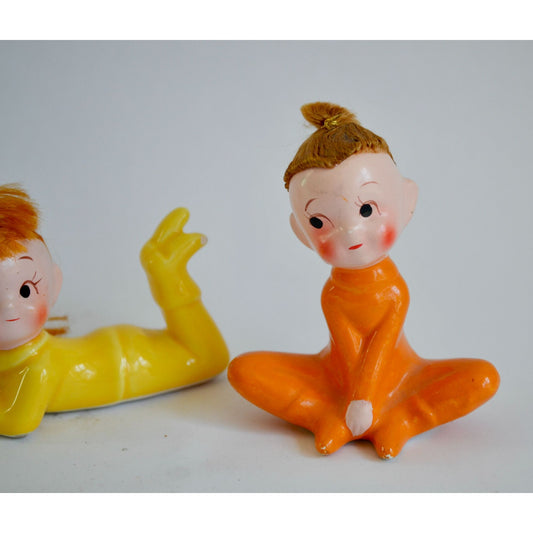 Vintage Pixie Elf Elves Set of 2 Hair Orange Yellow Figurines