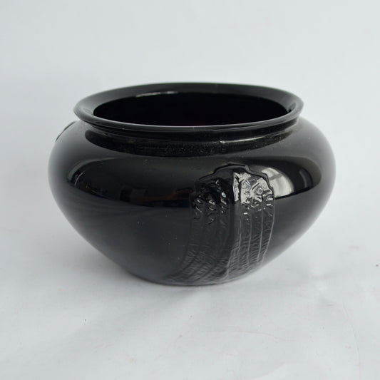 LE Smith Black Glass Bowl Glass Round Vase Art Deco