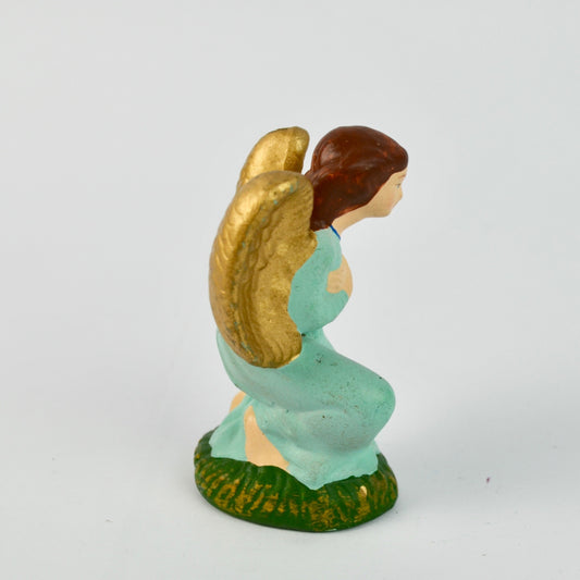 Kneeling Angel Figurine With Golden Wings Vintage Nativity Replacement Piece