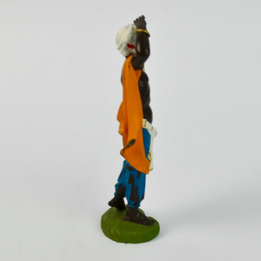 Vintage Hand-Painted Wise Man Figurine Nativity Scene 4" Tall Red & Green Robe