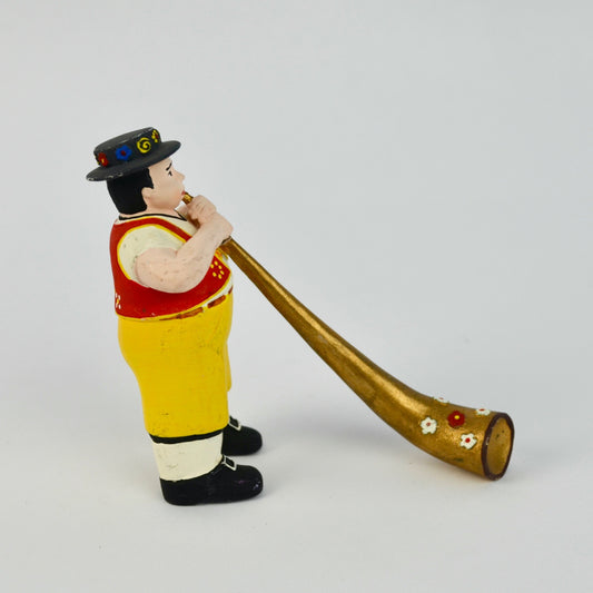 Hand-Painted Folk Musician Figurine With Alpine Horn & Traditional Outfit
