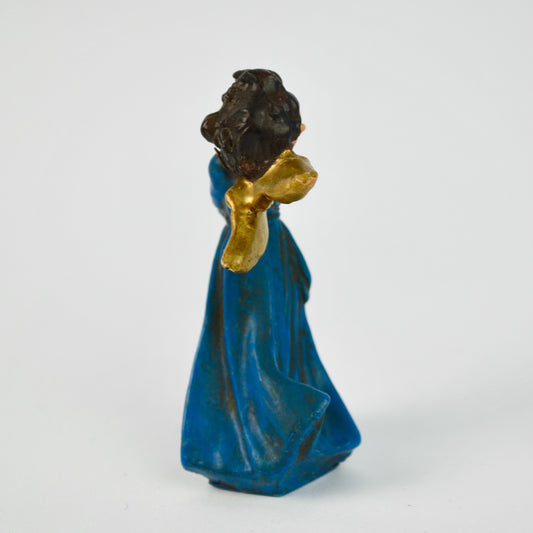 Vintage Hand-Painted Italian Angel Figurine With Cymbals Gold & Blue 3.5"