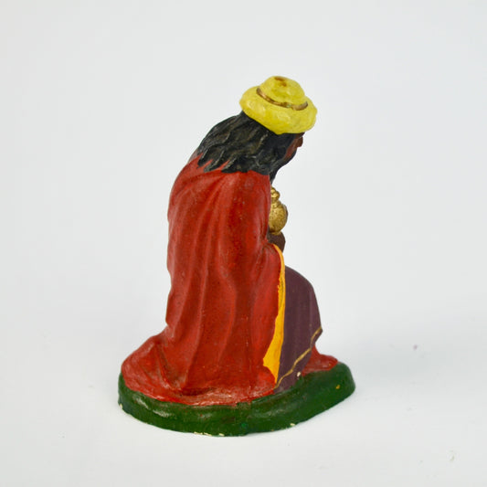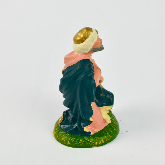 Vintage Painted Ceramic King Figurine Kneeling With Gift Nativity Scene Collectible Christmas Decor