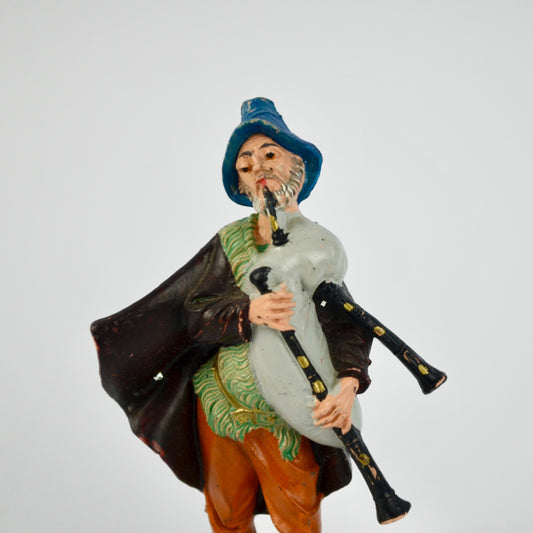 Hand-Painted Depose Italy Bagpiper Figurine With Blue Hat & Green Base Nativity