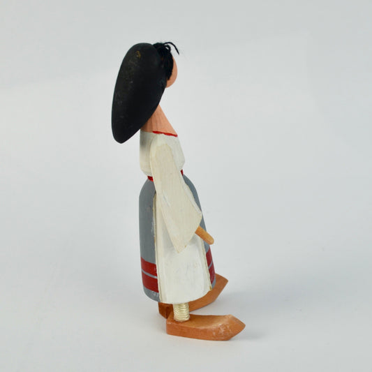 Vintage Scandinavian Handmade Female Figurine 1995 With Wooden Base & Traditional Dress Design