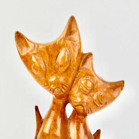 Vintage MCM Hand Carved Wooden Siamese Cat Figurine Pair Teak Folk Art