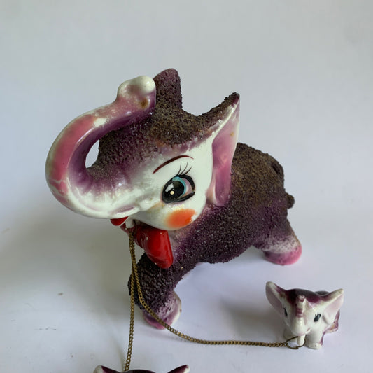 Vintage Mama Chained Babies Elephant Anthropomorphic Salt Glazed Purple
