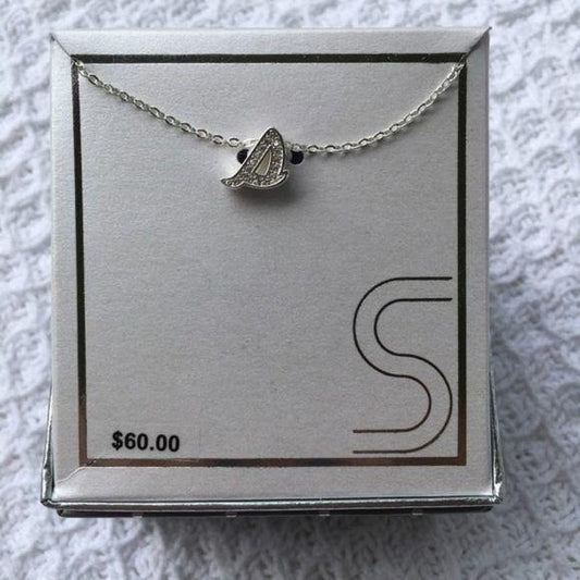 Silver-Plated CZ Initial “S” Pendant Necklace New