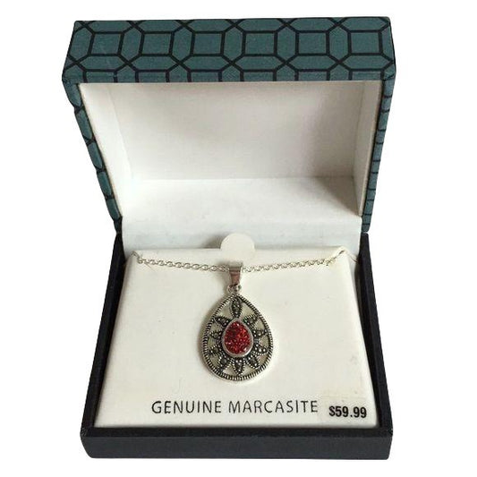 NEW Genuine Marcasite Red CZ Teardrop Necklace