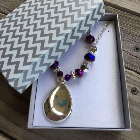 Purple & Silver Teardrop Pendant Necklace