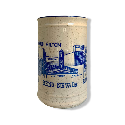 Vintage Reno Nevada Blue Speckled Tall Coffee Beer Mug