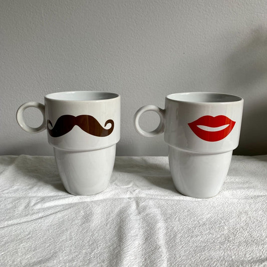 Caribou Coffee His and Hers Mustache Lips Coffee Mugs Pair of 2