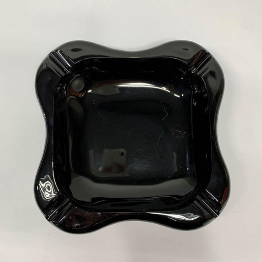 Vintage Black Solid Glass Large Ashtray 9” MCM