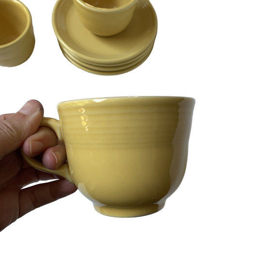 FIESTAWARE Mugs Cups (4) and Saucers (4) Pale Yellow Coffee Tea