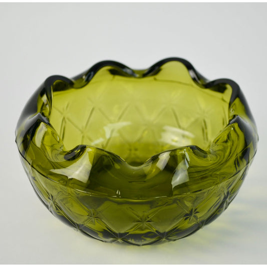 Indiana Glass Green Quilted Diamond Fluted Candy Dish Bowl