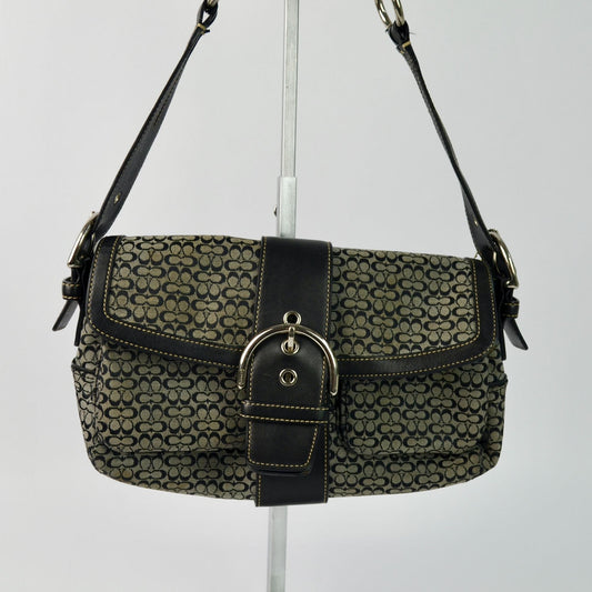 COACH 1463 SOHO Shoulder Bag Hand Bag Canvas Leather Signature Black HOBO Y2K