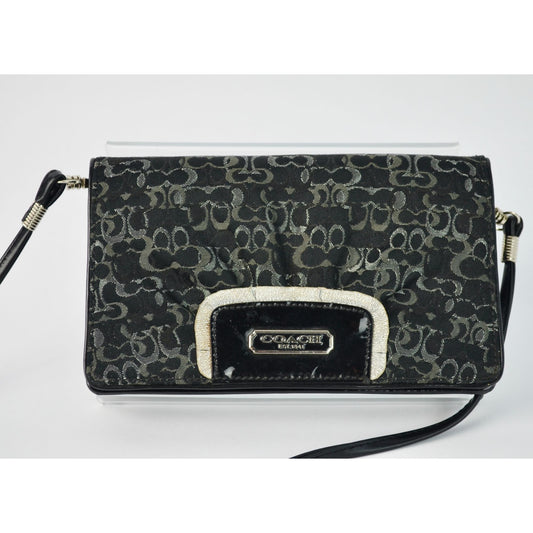Coach Signature Clutch Wallet Black Silver Detail Crossbody Bag Removable Strap