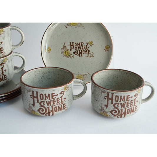 Vintage Home Sweet Home Gray Speckled Stoneware Japan Plates & Mugs Set