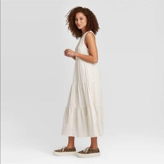 NEW A New Day Cream White Tiered Midi Dress Small