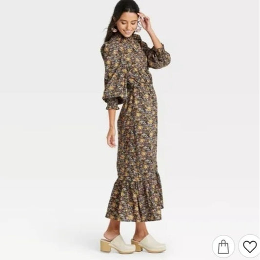 Universal Thread Black Floral Balloon Sleeve Dress Cottagecore