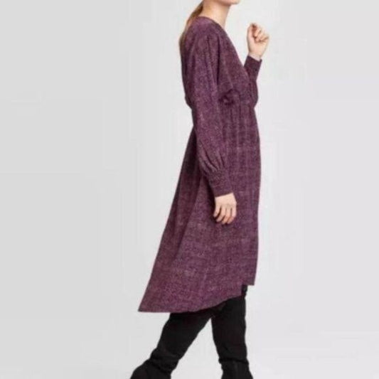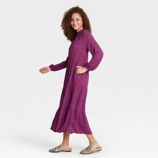A New Day Long Sleeve Tiered Dress Purple Small