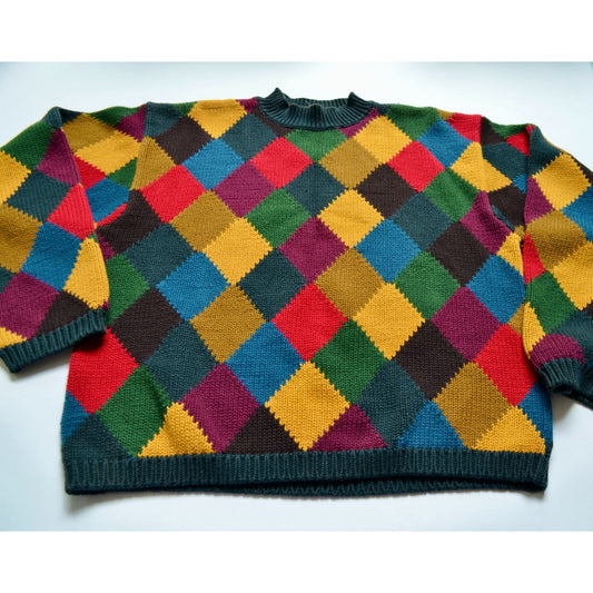 Vintage 90s Multicolor Argyle Geometric Sweater 100% Cotton Maurice Sasson Men's Large