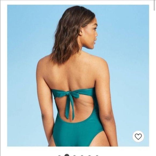 Shade & Shore Teal Bandeau Tie Back Swimsuit