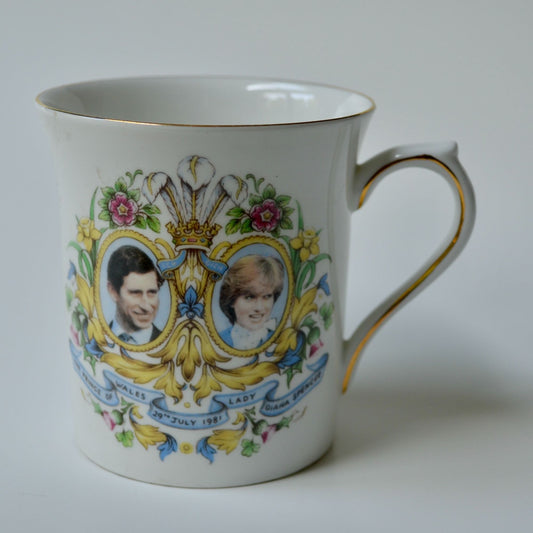Rosina China Co Bone Queen's England Charles Diana Coffee Mug Gold Trim