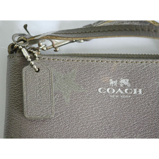 Coach F64645 Star Canyon Grey Gray Leather Silver Wristlet Zip Hangtag