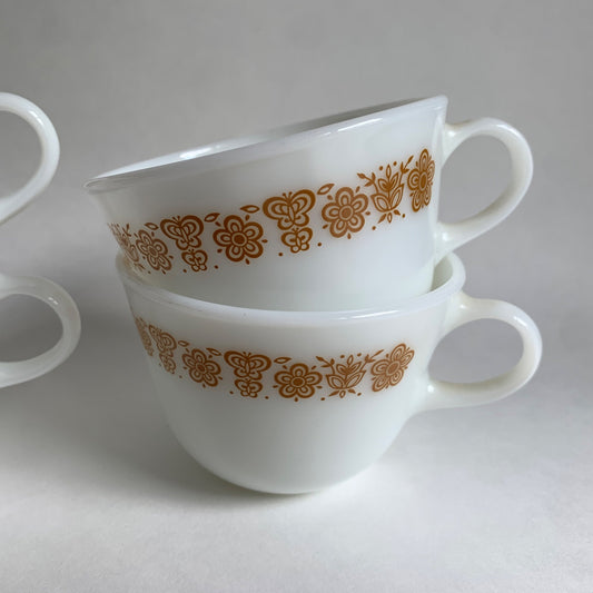 Pyrex Butterfly Gold Milk Glass Coffee Mugs Set of 4