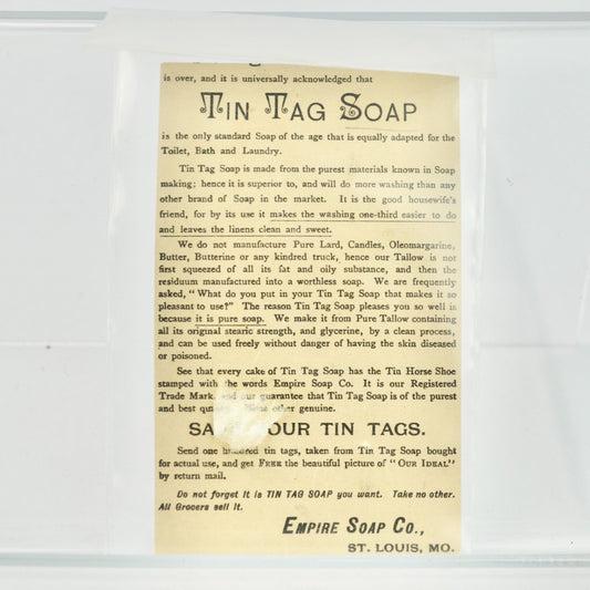 Tin Tag Soap Antique Trading Trade Card Soldiers Horse Flag