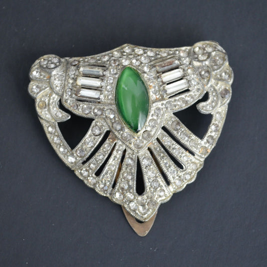 Vintage Art Deco Dress Clip Green Stone CZ Unmarked