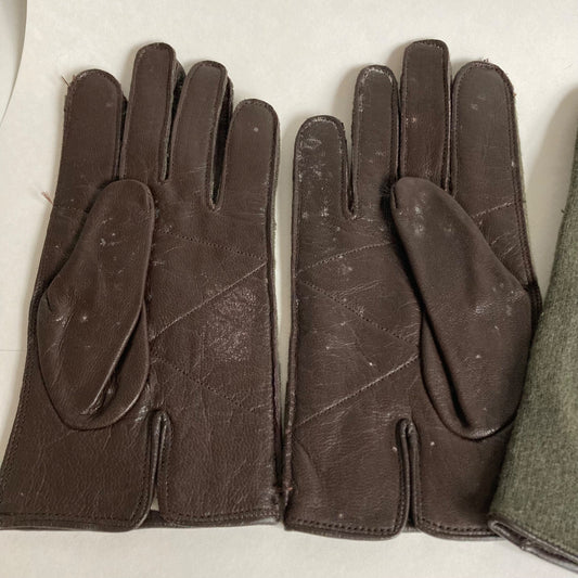 Vintage Lot 2 Pairs European Military Gloves Leather Wool